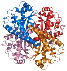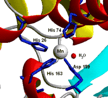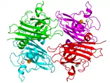 ![]() ساختار چهارگانهٔ آنزیم سوپراکسید دیسموتاز منگنزدار انسان.[1] | |||||||||