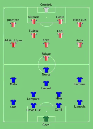 - «Full Time Report – Chelsea – Atlético Madrid» (PDF). وبگاه رسمی یوفا. ۳۱ اوت ۲۰۱۲.