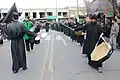 در جلوی دستهها، پرچمداران به راه میافتند و سپس افراد بزرگتر زنجیرزن به ترتیب قد در دو صف طویل حرکت میکنند و در بین آنها افرادی نوحه میخوانند و طبل یا دهل میزنند. سپس سینهزنها در پشت این صف حرکت میکنند.