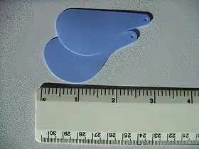 ![]() اینها تیغههای انعطافپذیری هستند که در سپتوپلاستی ممکن است استفاده شوند. این تیغهها با سوراخهایی که در خود دارند با بخیه سر جایشان در بینی محکم میشوند؛ و معمولاً بعد از هفت یا ده روز بعد از جراحی برداشته میشوند. | |