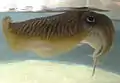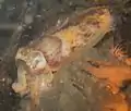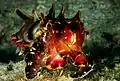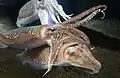 سپیداج نگارین (Metasepia pfefferi) که با رنگهای روشن حالت هجومی به خود گرفته.