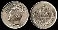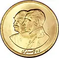 روی سکه ۱۰ پهلوی - سال ۱۳۵۵ خورشیدی - ۱۹۷۶ میلادی به مناسبت پنجاهمین سالگرد تأسیس سلسله پهلوی / چهره رضا شاه و محمدرضا شاه بر روی سکه میباشد.