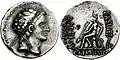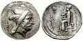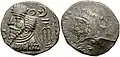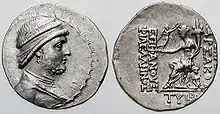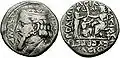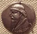 سکه نقره دراخما مهرداد یکم، به همراه ریش و سربند پادشاهی