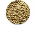 بزرگترین سکه جهان سکهای زرین است که نوشته روی آن به فارسی است و مشخصات سکه عبارت است از: وزن آن بیش از هفتاد اونس (اونس = ۳۱٫۱۰۳۴۷۶۸ گرم) - اندازه قطر و دایره این سکه ١٤/٥ سانتیمتر است. نوشته روی سکه «لا اله الا الله محمد رسولالله» و عبارت «ضرب دارالخلافه شاه جهانآباد ۱۰۶۴» و درحاشیه آن هم این شعر دیده میشود: