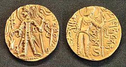 ایزدان مختلف بر روی سکههای کوشانی (نامها به زبان بلخی هستند)