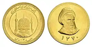 همگام با ورود ماشین ضرب سکه و استانداردسازی اندازه و وزن سکههای رسمی در سال ۱۲۹۳ هـ ق، نخستین سکههای طلا با عیار ۹۰۰ در هزار و با واحد تومان ضرب و وارد چرخه پولی ایران شد.[1]