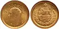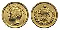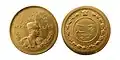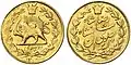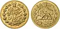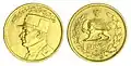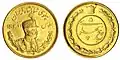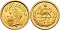 ب- سکههای طلا در یک طرف تمثال اعلیحضرت همایونی شاهنشاه ایران و در طرف دیگر شیر و خورشید و قیمت سکه و سال ضرب را دارند.