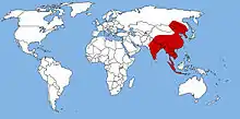 سگ جنگلی در هند ، جاوه، سوماترا، قزاقستان، کامبوج، قرقیزستان، تایلند، تاجیکستان، چین، کره، نپال، بنگلادش، بوتان، ویتنام، مالزی، میانمار، مغولستان، لائوس و روسیه زندگی میکند.
