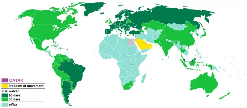 شهروندان کشورهای عضو شورای همکاری خلیج فارس از آزادی حرکت در قطر برخوردارند و نیازی به روادید برای ورود به قطر در هیچ شرایطی ندارند:[2]