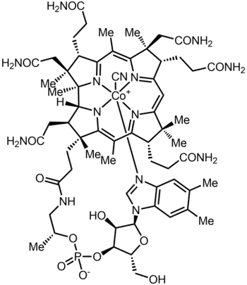 سیانوکوبالامین نوعی ویتامین B12 مصنوعاً تولید شدهاست که از آن برای درمان کمبود ویتامین «B12» B