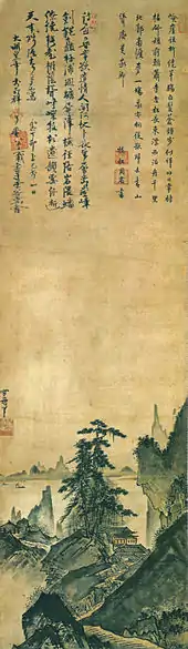 چشمانداز، اثر سسشو یکی از اصیلترین نمونههای سیاهقلم ادیبان است. مناظر کوهستانی از موضوعات اصلی بهکاررفته در سیاهقلمکاری ادیبان بوده است.