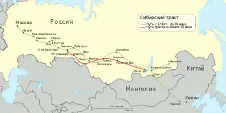 تا میانههای سدهٔ هفدهم میلادی روسیه مناطق مختلف تحت کنترل خود در سیبری را تا اقیانوس آرام رساند. حدود ۲۳۰ هزار روس تا سال ۱۷۰۹ در سیبری سکونت گزیده بودند.[7] سیبری بعدها از تبعیدگاههای عمدهٔ سیاسی در روسیه شد.[8] از زمان امپراتوری پتر یکم (۱۷۲۵-۱۶۷۲) تا زمان فروپاشی شوروی، زندانیان سیاسی و جنایتکاران محکوم به کار اجباری و آنانی که از سوی دولت برای جامعه خطرناک تشخیص داده میشدند را به سیبری اعزام میکردند.