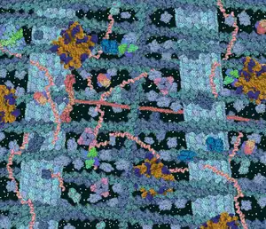 - کمپلکسهای پروتئینی مانند پروتئازومها و کربوکسی زومها که بخشهایی از سیتوزول را احاطه نموده و از بقیه قسمتها جدا میکنند.[4]