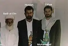 ![]() سید بدرالدین حوثی (سمت چپ) در کنار فرزندانش سید حسین و سیدیحیی بدرالدین حوثی | |