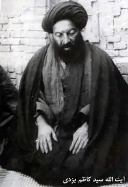 سید محمدکاظم طباطبایی یزدی (درگذشته ۸ اردیبهشت ۱۲۹۸ شمسی در نجف) معروف به صاحب عروه∗ از فقهای شیعه مولف کتاب «عروة الوثقی» و مخالف مشروطه است