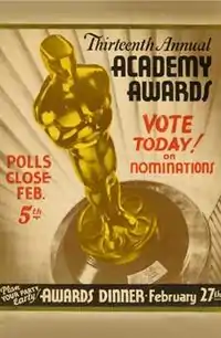 سیزدهمین دوره مراسم اعطای جوایز اسکار (انگلیسی: 13th Academy Awards) در روز ۲۷ فوریه ۱۹۴۱ در Biltmore Bowl, هتل میلنیوم بیلتمور لوس آنجلس برگزار شد. در این مراسم بهترین فیلمهای سال ۱۹۴۰ جهان به انتخاب آکادمی علوم و هنرهای تصاویر متحرک جایزه گرفتند.