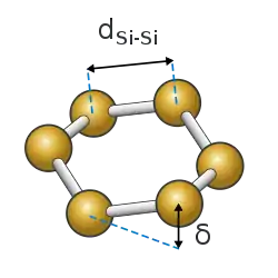 خمیده بودن ساختار ششضلعی سیلیسین ناشی از اثر شبه ژان-تلر است.[17]
