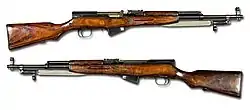 طراحی سیمونوف در پی مشخص شدن نیاز به یک سلاح سبک و کوچک با لگد کم در دوران جنگ جهانی دوم صورت گرفت. برای این منظور چندین سلاح با فشنگ متوسط ۳۹×۷٫۶۲ میلیمتری طراحی شدند که سیمینوف نخستین آنها بود. اولین نمونه این سلاح در سال ۱۹۴۵ ساخته و در خطوط مقدم جبهه علیه آلمانها آزمایش شد. این سلاح از سیستم گلنگدن مسلحشونده با گاز باروت استفاده میکند. پیستون گاز آن از نوع کورس کوتاه میباشد. تغذیه این سلاح به وسیلهٔ شانه فشنگهای ۱۰ تیری صورت میگیرد. قنداق این سلاح از جنس چوب است. قابلیت نصب سرنیزه و دوربین تلسکوپی را هم دارد. سیمونوف نسبت به کلاشنیکف از دقت و برد مفید بهتری برخوردار است اما ظرفیت کم فشنگ و نداشتن قابلیت شلیک رگبار از نقاط ضعف آن است. البته از نظر کاربرد غیرنظامی این سلاح همچنان انتخاب ایدهآلی است به ویژه با درنظرگرفتن قیمت ارزان آن. وزن خالی این سلاح ۳٫۸۶ کیلوگرم، طول آن ۱۰۲ سانتیمتر و طول لوله ۵۲ سانتیمتر است.[1]