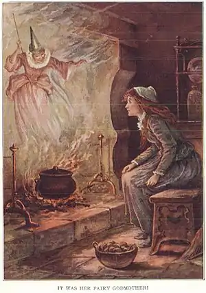 یک بیوهٔ ثروتمند یک دختر جوان زیبا دارد، دختری از مهربانی بینظیر و خلوص شیرین. آقا به عنوان همسر دوم خود با یک زن غرور و غرور ازدواج میکند. او دو دختر دارد که به همان اندازه بیهوده و خودخواه هستند. این دختر توسط نامادری خود، جایی که او به کار شبانهروزی انجام میشود، مجبور به بندگی میشود. پس از انجام کارهای روزانهٔ دخترانه، او در تلاش برای گرم ماندن در نزدیکی شومینه است. او غالباً بهوجود میآید که پوشیده از سکهها باشد و نام مستعار مسخرهٔ «سیندرلا» را توسط پله پلههایش به وجود آورد. سیندرلا صبر سوءاستفاده را تحمل میکند و به پدرش نمیگوید، چه کسی او را مورد سرزنش قرار میداد.
