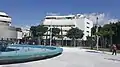 نمایی از هتل سینما (سینما استر سابق)، در جلو، آبنمای آب و آتش اثر یاکو آگام وسط میدان دیزنگوف.