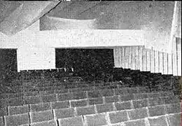 ظرفیت سالن سینما ۱٬۴۰۰ نفر بود و صندلیهایش از جنس مخمل قرمز بودند. تماشاگران میتوانستند به راحتی روی صندلیها تکیه دهند و بر پردهٔ سینما مسلط باشند. عرض پردهٔ نمایش چهارده و نیم متر بود.[5]