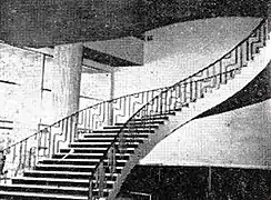 درهای ورودی سینما از سمت خیابان پهلوی باز میشدند و تماماً شیشهای بودند. سالن انتظار، دارای چندین ستون بزرگ مرمرین بود که با ظرافت تراشیده شده بودند. پلکان مارپیچیشکل زیبایی این سالن را به بالکن سالن نمایش فیلم که در طبقه دوم قرار داشت، متصل میکرد. کف سالن نیز با سنگ مرمر پوشیده شده بود.[5] در معماری سینما از شیشه به صورت گستردهای استفاده شدهاست، ضلع غربی و در ورودی از کف سالن تا سقف شیشهای بودند، به گونهای که پلکان مارپیچ و مردمی که داخل سینما حضور داشتند از بیرون سینما پیدا بودند.[1][5]