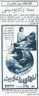 - «فرح پهلوی در سینما رادیوسیتی فیلم جالبی تماشا کرد». روزنامه پست تهران. وبگاه انقلاب اسلامی. ۲۹ مرداد ۱۳۴۱. ص. ۶. بایگانیشده از روی نسخه اصلی در ۳ آوریل ۲۰۱۸.