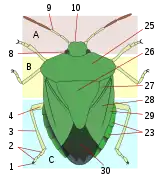 ۳ = سپرچه پشتی scutellum