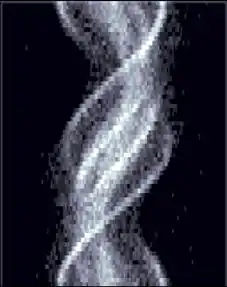 محور افقی این نمودار پروفیل شمارشی پرتو افکنده شده (projection count profile) یک سیستم اسپکت یا پت در یک زاویه معین است.[1] محور عمودی نشانگر زاویه پرتو افکنی است و میتواند از ۰ تا ۱۸۰، یا از ۰ تا ۳۶۰ درجه باشد.
