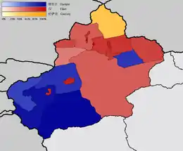 مردم این ناحیه از پنج قوم هان، اویغور، مردم قزاق، مردم هویی و تاجیکها تشکیل یافتهاند.