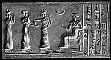 ![]() مهر استوانه ای که نفش سین را با هلال ماه نشان می دهد. | |