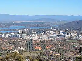 ![]() Civic viewed from Mount Ainslie with Lake Burley Griffin و Mount Stromlo in the background. | |||||||||||||||