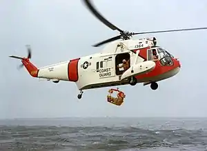| A U.S. Coast Guard HH-52A Seaguard using a rescue basket | |