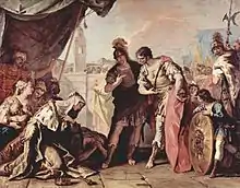 ![]() خانواده داریوش در برابر اسکندر، اثر شارل لو برن. سیسیگامبیس (به رنگ زرد) در برابر اسکند زانو زدهاست | |