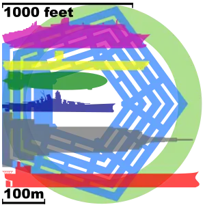 تصویر مقایسه سیوایز، امپایر استیت، کشتی هوایی هیندنبورگ و تعدادی دیگر: