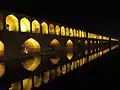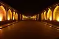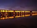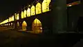 نمایی در شب از سیوسهپل در بستر بیآب زایندهرود
