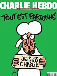 بازماندگان کشتار شارلی ابدو، با استقرار در مقر روزنامهٔ لیبراسیون شمارهٔ تازهٔ هفتهنامهٔ شارلی ابدو با عنوان «بخشودگی برای همه»، و با کارتونی از محمد، پیامبر اسلام در صفحهٔ نخست و با عنوان «من شارلی هستم» منتشر نمودند. این حرکت با واکنشهای منفی مسلمانان روبرو شد.[21][22] با این وجود، حدود «۸ میلیون» نسخه از نسخهٔ ۱۱۷۸ مجلهٔ شارلی ابدو بهفروش رفت.[23]