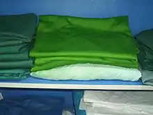 برای پوشاندن قسمتهایی از بدن بیمار، میزهای لوازم جراحی و تختهای اتاق عمل استفاده میشود.