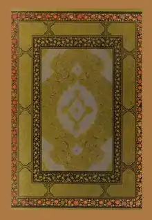 - صفحههای دوم و سوم نسخه دربرگیرنده تصویر شکارگاه است و در این دو صفحه مذهب به نقش دو ترنج، نام و القاب آن شاهزاده دیده میشود.