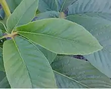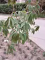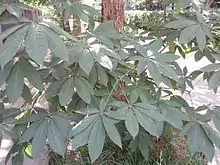 Chinese horse-chestnut (Aesculus chinensis) young leaves in spring ...