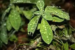قطرات شبنم بر روی برگ گیاه جنگلی