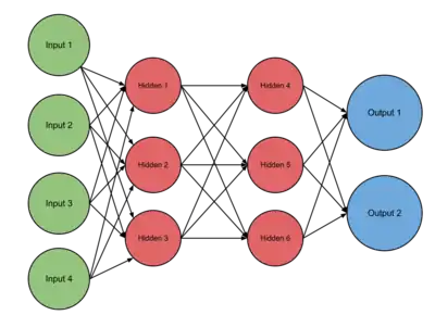 برای سلول عصبی ورودیی که از سلول عصبی به این سلول وارد میشود را با نشان میدهیم. وزن این ورودی است و مجموع ضرب ورودیها با وزنهایشان را با نمایش میدهیم، به این معنی که . حال باید بر روی تابعی غیر خطی اعمال کنیم این تابع را مینامیم و خروجی آن را با نمایش میدهیم یعنی . به همین شکل خروجیی که از سلول عصبی خارج شده و به سلول وارد میشود را با نمایش میدهیم و وزن آن را مینامیم. حال تمام وزنهای این شبکه عصبی را در مجموعهای به اسم میگنجانیم، هدف یادگیری این وزنهاست.[3] اگر ورودی ما باشد و خروجی و خروجی شبکه عصبی ما ، هدف پیدا کردن انتخاب است به قسمی که برای تمام دادهها و به هم خیلی نزدیک شوند. به عبارت دیگر هدف کوچک کردن یک تابع هزینه بر روی تمام داده هاست، اگر دادهها را با و تابع هزینه را با نشان دهیم هدف کمینه کردن تابع پایین است:[4]
