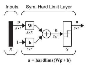 یک پرسپترون را میتوان با استفاده از هر مقداری برای حالات فعال و غیرفعال، تا زمانی که مقدار آستانه بین دو مقدار قرار دارد، ساخت. اکثر پرسپترونها خروجیهایی از ۱ یا -۱ با مقدار آستانه ۰ دارند. شبکههای دارای ساختار بالا را با سرعت بیشتری نسبت به شبکههای متشکل از نورونهای دارای مقادیر مختلف فعال و غیرفعال، میتوان آموزش داد.[7]