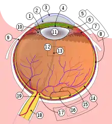 ![]() Right چشم انسان cross-sectional view. Courtesy NIH مؤسسه ملی بینایی ایالات متحده آمریکا. Many animals have eyes different from the human eye. | |