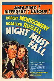 شب باید سقوط کند (به انگلیسی: Night Must Fall) فیلمیست محصول سال ۱۹۳۷ که از نمایشی با همین عنوان، نوشته املین ویلیامز، اقتباس شده است. کار اقتباس این فیلم بر دوش جان فن دروتن بوده و ریچارد تورپ آن را کارگردانی کرده است. ستارگان این فیلم رابرت مونتگومری، روسالیند راسل و می ویتی هستند. ویتی نقشش را در نمایش این اثر نیز، در لندن و نیویورک، بازی کرده است. این فیلم نظر منتقدان را به خود جلب کرد و توانست از دیدگاه هیئت ملی بازبینی فیلم به عنوان بهترین فیلم سال انتخاب شود.