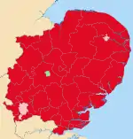 | 11. سافک | a) Ipswich, b) Suffolk Coastal, c) Waveney, d) Mid Suffolk, e) Babergh, f) St. Edmundsbury, g) Forest Heath | ||