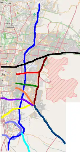 بزرگراه شهید کریمی (نیمدایره بالایی) و بزرگراه شهید آوینی (نیمدایره پایینی)