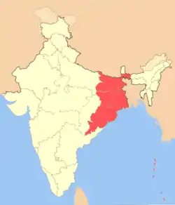![]() ناحیه نارنجیرنگ موقعیت شرق هند را درون کشور هند نشان میدهد[2] | |