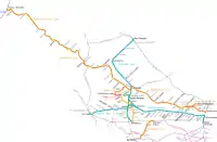 خطوط راه آهن سیبو به دو گروه اصلی تقسیم میشود.