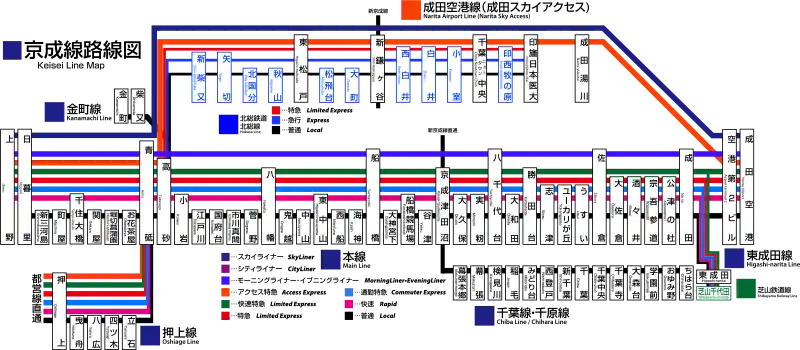 成田空港線 | Keisei-Takasago | – | فرودگاه بینالمللی ناریتا | 51.4 |